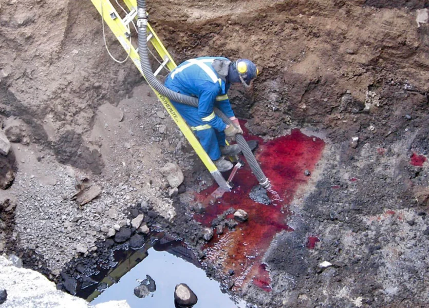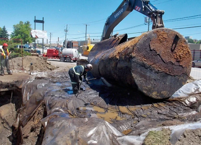 Lors de travaux de réhabilitation, il est fréquent que la nappe phréatique soit interceptée et que l’eau souterraine se contamine au contact des hydrocarbures présents dans les sols.